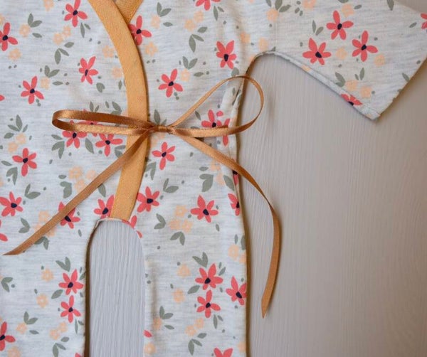 Gemaakt van zachte, rekbare stoffen die perfect aansluiten bij het tere lichaampje van jouw kindje. De delicate bloemetjes geven het pakje een serene en liefdevolle uitstraling, geschikt voor zowel jongens als meisjes. Elk pakje wordt met de hand vervaardigd, met zorg en aandacht voor elk detail.