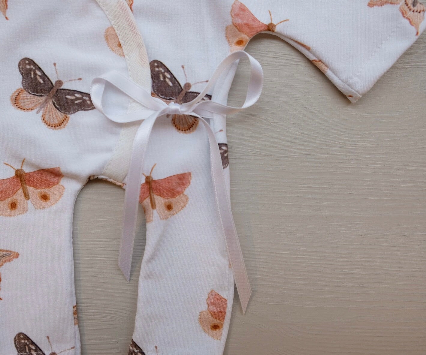 Gemaakt van zacht, rekbaar materiaal dat perfect aansluit bij het tere lichaampje van je kindje. De subtiele vlindertjes geven het pakje een serene en liefdevolle uitstraling, geschikt voor zowel jongens als meisjes. Elk pakje wordt met de hand vervaardigd, met zorg en aandacht voor elk detail, zodat het een dierbaar aandenken blijft.