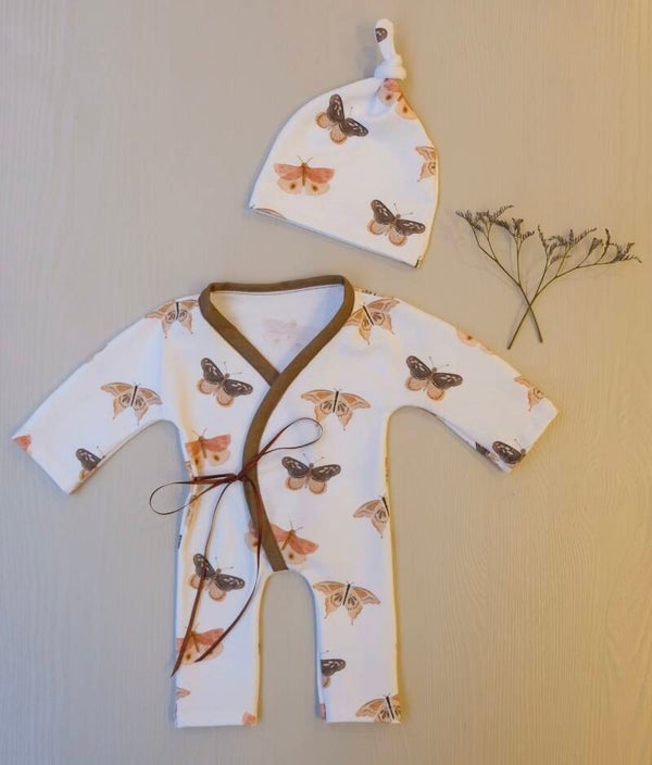 Gemaakt van zacht, rekbaar materiaal dat perfect aansluit bij het tere lichaampje van je kindje. De subtiele vlindertjes geven het pakje een serene en liefdevolle uitstraling, geschikt voor zowel jongens als meisjes. Elk pakje wordt met de hand vervaardigd, met zorg en aandacht voor elk detail, zodat het een dierbaar aandenken blijft.