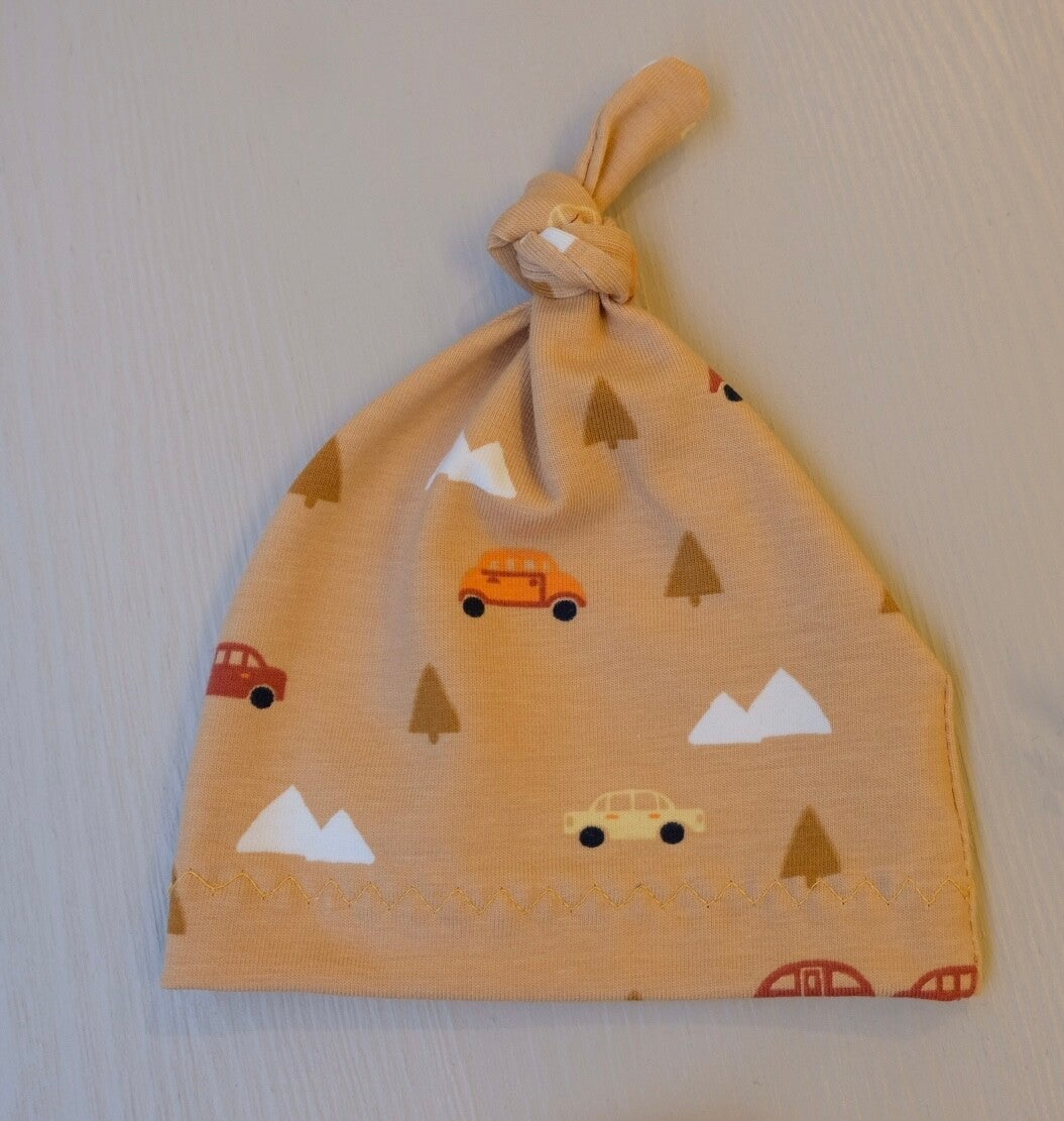 Het zachte oranje pakje is versierd met lieve autootjes, die een tedere en speelse uitstraling geven, terwijl het tegelijkertijd een gevoel van geborgenheid en troost biedt.